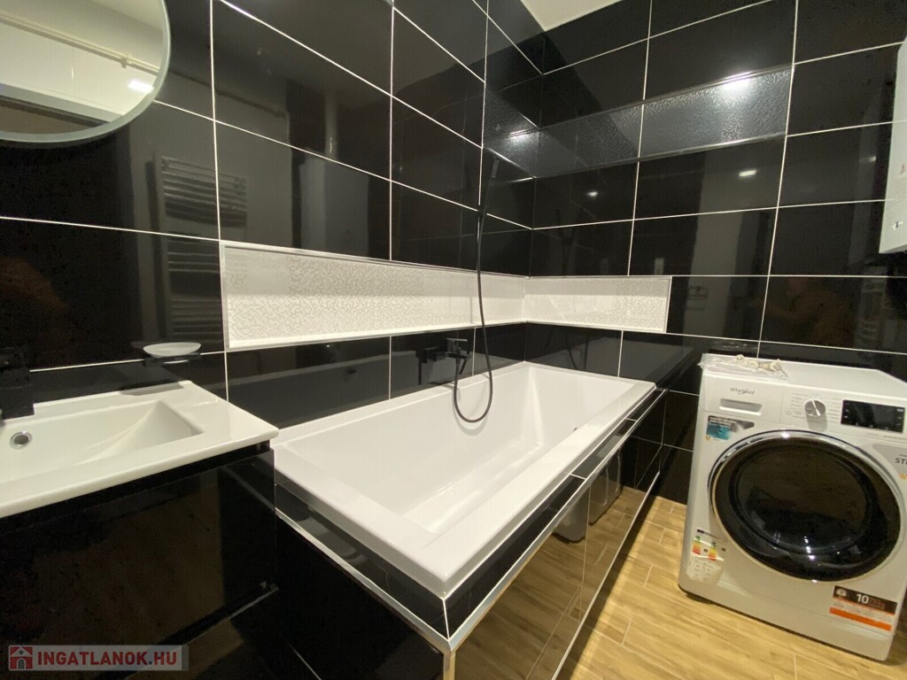 A lakás teljes körűen bútorozott, minőségi Bosch gépesítéssel felszerelt (mosogatógép, mosó-szárítógép).