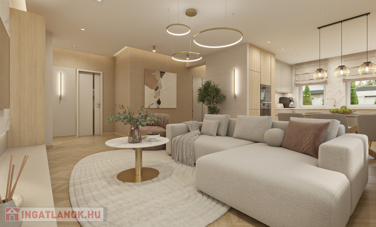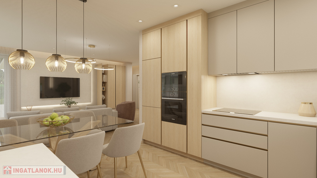 Az ingatlan teljesen gépesítve, lakberendező által megtervezett, egyedi bútorzattal kerül átadásra, így az új tulajdonosnak valóban csak költöznie kell. A gondosan kialakított enteriőr és a beépített konyhai gépek a mindennapi komfortot szolgálják.
