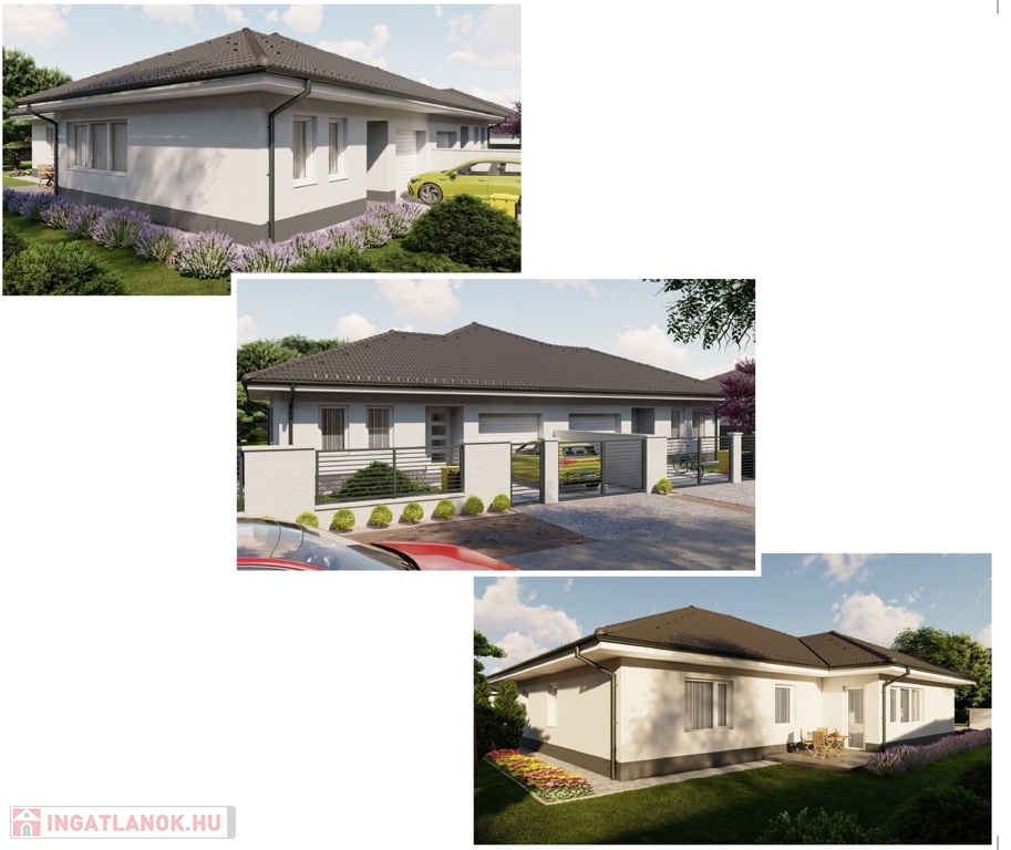 Az ikerházhoz 18,5 m²-es, automata szekcionált kapuval ellátott garázs, valamint egy 500 m²-es telekrész tartozik.