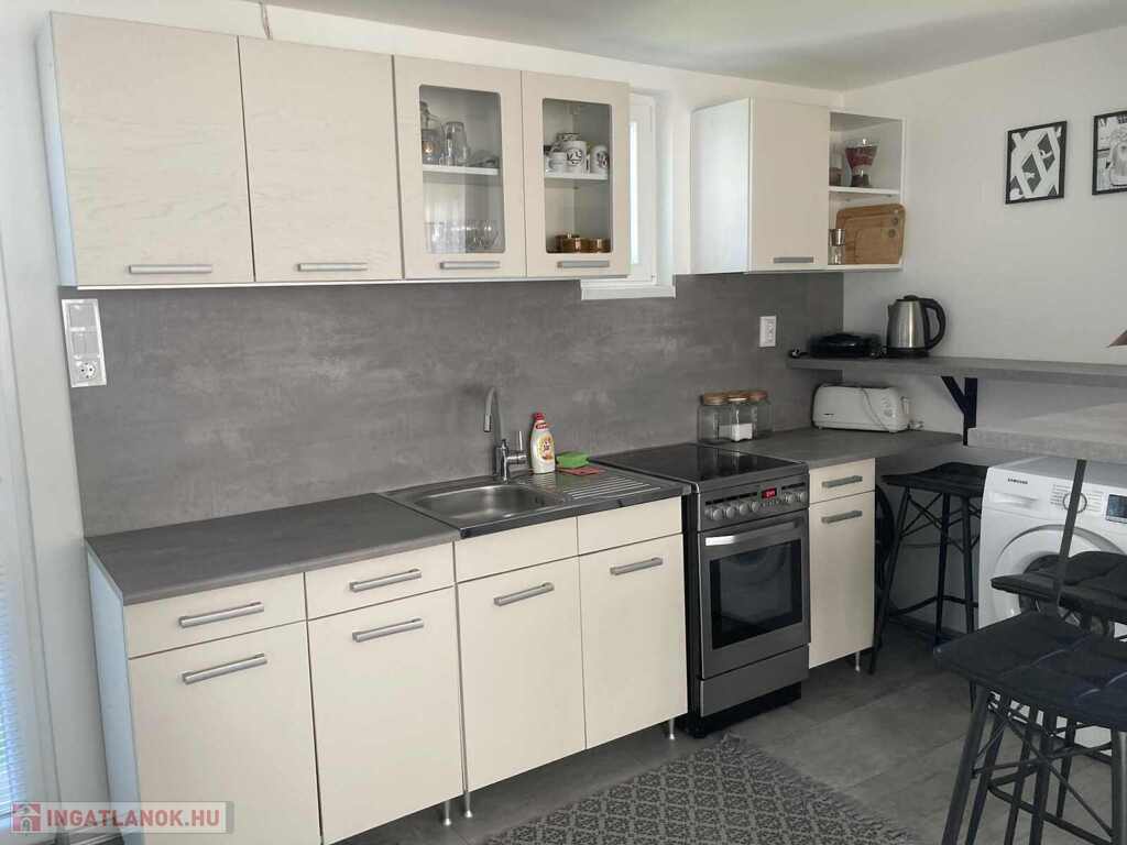 A telken található egy 63 m²-es, teljes körűen felújított, földszintes lakóház is, amerikai konyhás nappalival és 2 külön nyíló szobával, kandallóval és klímával.Ideális többgenerációs együttélésre, vendégháznak vagy bérbeadásra.