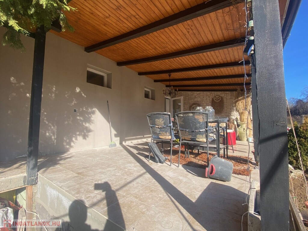 A lakóteret tovább növeli egy 30 m²-es fedett terasz.