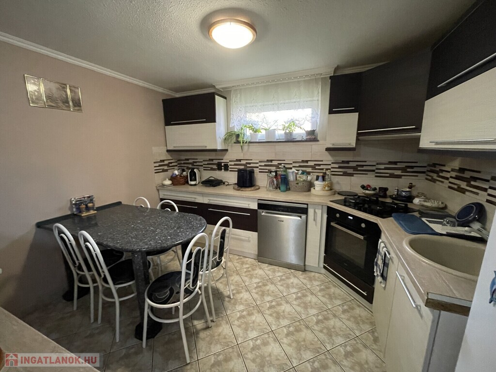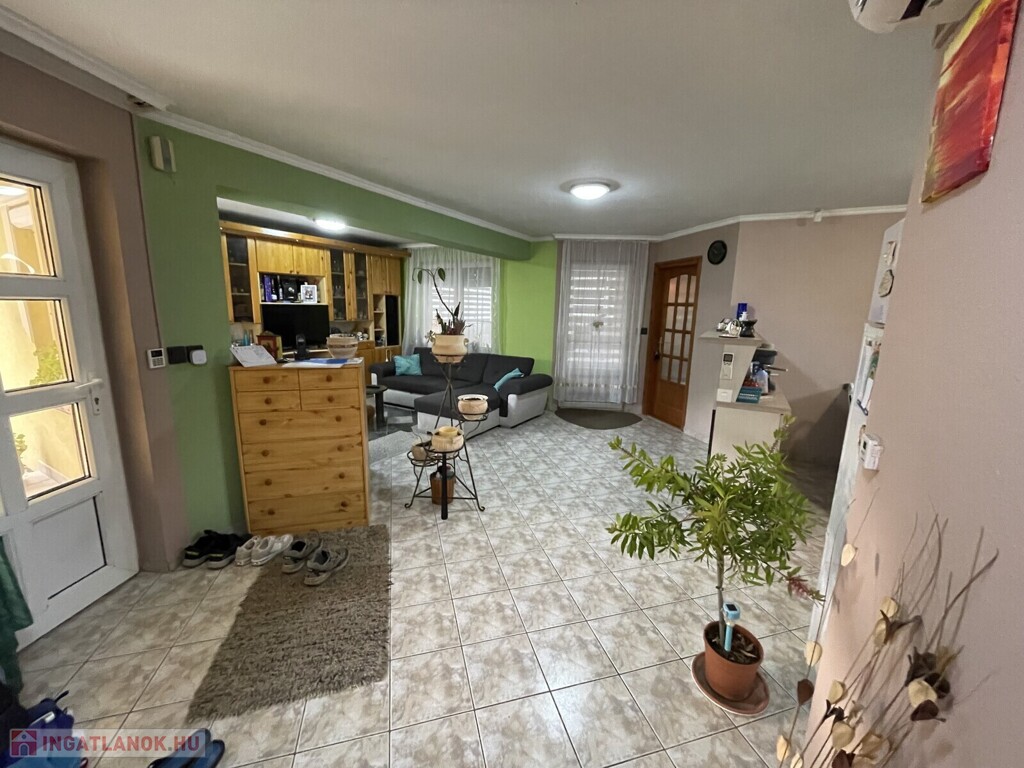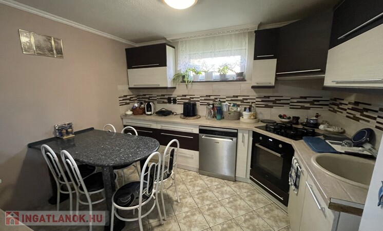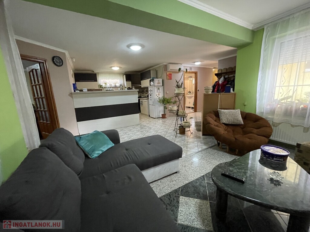 Eladó Nyíregyháza–Nyírszőlősön, egy 2000-ben épült, tégla falazatú, 5 cm hőszigeteléssel ellátott, 96 m²-es családi ház. A 2050 m²-es, két utcára nyíló telek kiváló elhelyezkedésű és sokoldalúan hasznosítható. A lakóházban három tágas szoba, nappali, külön fürdőszoba és WC, kamra, valamint igényesen kialakított, gépesített konyha található. Az épület belmagassága egyedi, 2,40 méter, amely otthonos, kellemes térérzetet biztosít. A műanyag nyílászárók redőnnyel és szúnyoghálóval felszereltek, a komfortot két klíma biztosítja. A házhoz tartozik egy 20 m²-es fedett terasz, nyugati–keleti fekvéssel. Gránit párkányok, betonfödém, gázcirkó fűtés, valamint riasztórendszer teszik teljessé a kényelmet. A telken fúrt kút és házi vízmű is található. A gondozott udvaron filagória és kerti tó kapott helyet, a telek két utcáról is megközelíthető. Az ingatlan aszfaltozott utcában helyezkedik el, kiváló lakóközösségben. A telken egy 171 m²-es, csarnok jellegű melléképület is található, 6,5 méteres belmagassággal, 8 méter hosszú szerelőaknával és irodahelyiséggel, amely vállalkozás, raktározás vagy műhely céljára is kiválóan alkalmas. A környék központi elhelyezkedésű, a közelben iskola, óvoda, bölcsőde, gyógyszertár, boltok és buszmegálló is megtalálható, mindössze néhány perc sétára. Az ingatlan így kiváló választás mind családok, mind vállalkozók számára.Az ingatlan azonosítója: 99906Érdeklődni: +36703610015 Az ingatlan azonosítója: 99906 Érdeklődni: +36703610015
