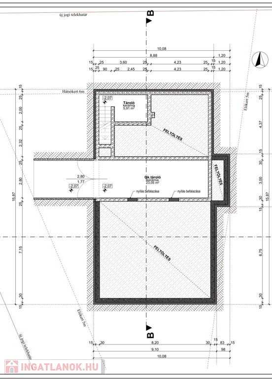 Tárolás: 30 m2-es szerelőaknás garázs és tároló a ház alatt