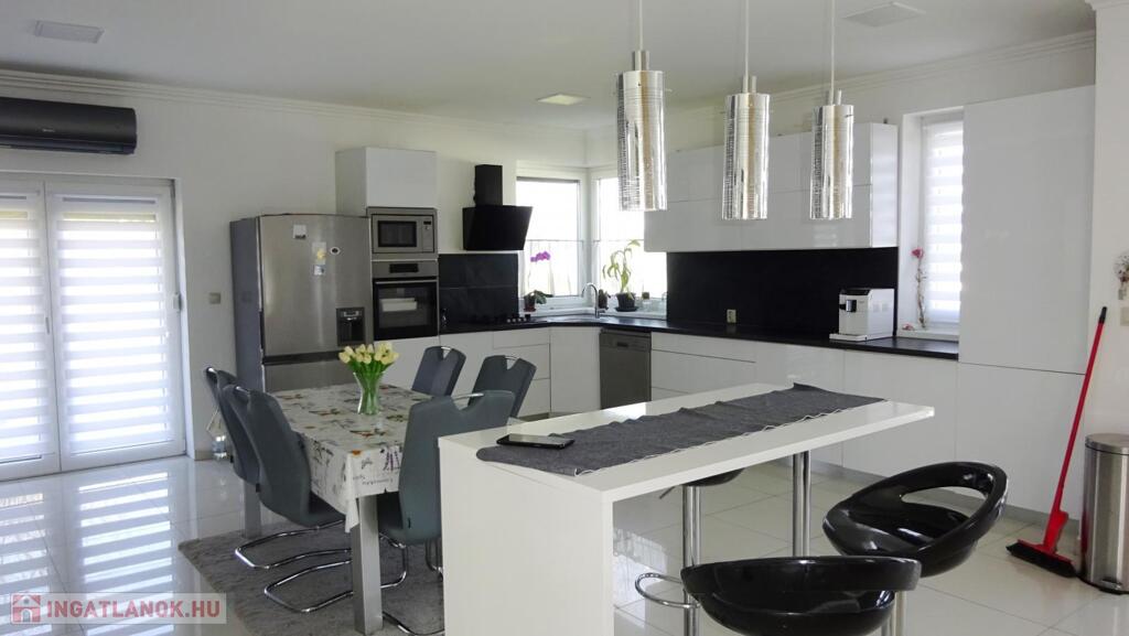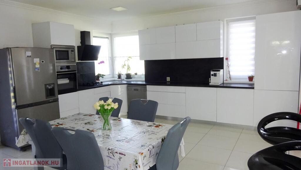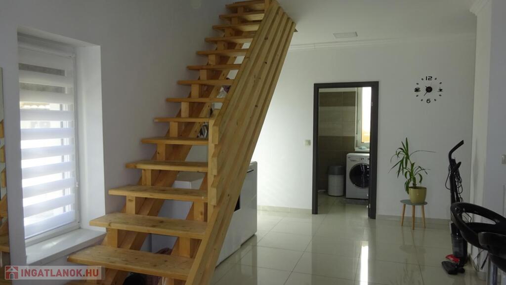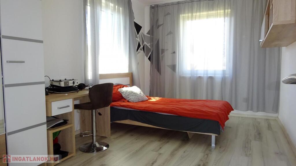 Nyíregyháza Tünde utca közelében eladóvá vált egy 2021-ben épült, 142 nm-es, négy szoba+étkezőkonyhás szintes családi ház két terasszal. További jellemzők: - tégla falazat, 20 cm homlokzati szigeteléssel, - Bramac tetőcserép, - telek területe: 572 nm, - 3 rétegű műanyag nyílászárók, alumínium redőnnyel felszerelve, - kondenzációs kazán+ padlófűtés, - beépített, gépesített konyhabútor, - duplakomfort, - 2 db klíma - alsó szinten: konyha-étkező-nappali, egy hálószoba, fürdőszoba, külön Wc - felső szinten: három hálószoba, társalgó (közlekedő), fürdőszoba+Wc. Amennyiben felkeltette érdeklődést, várom hívását.Az ingatlan azonosítója: 90843Érdeklődni: +36303161404 Az ingatlan azonosítója: 90843 Érdeklődni: +36303161404