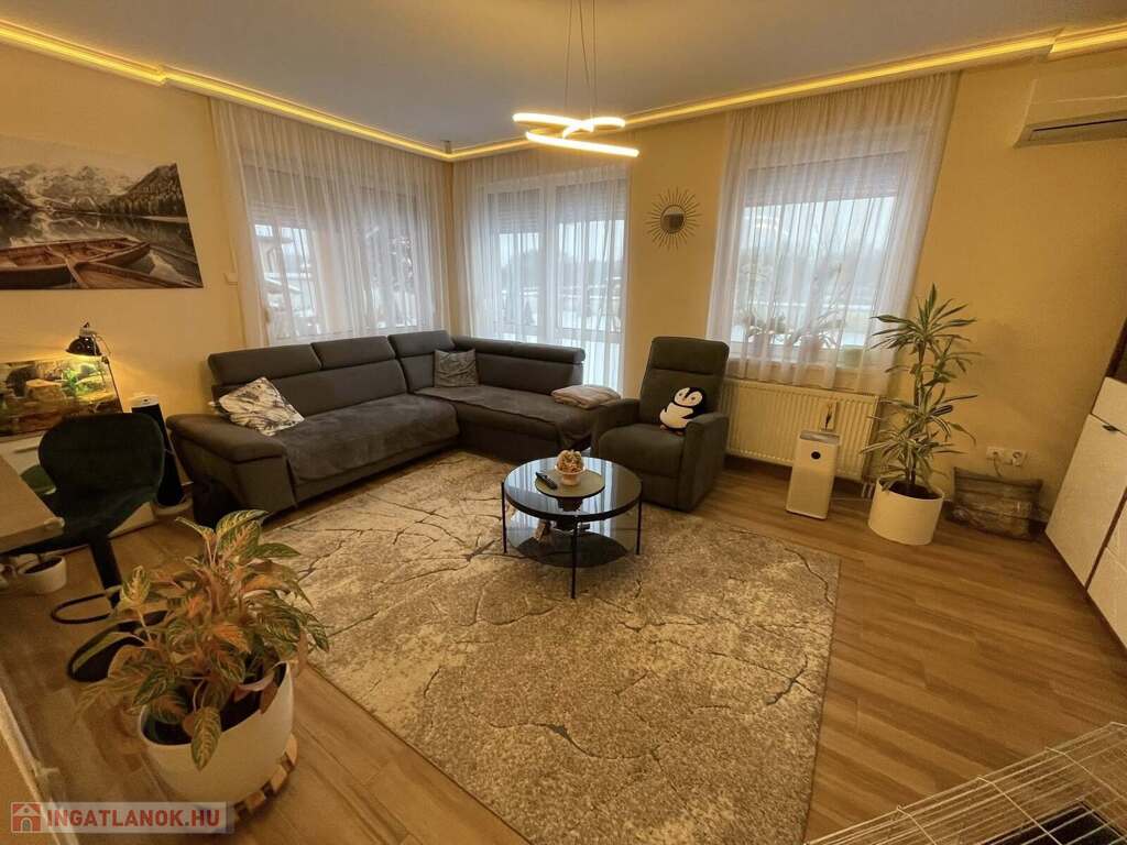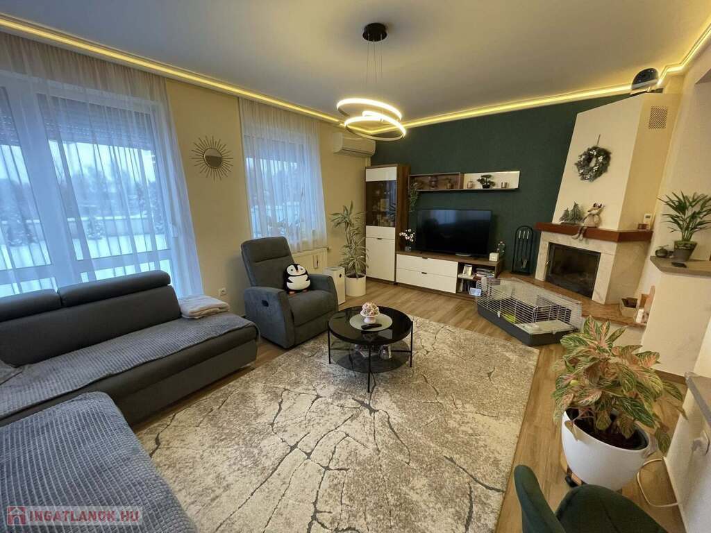 Nyíregyháza Felsőpázsiton az elkerülő szomszédságában csendes, rendezett környezetben kínálunk megvételre egy 2007-ben épült, tégla falazatú, szigetelt, 105 m²-es családi házat, amelyhez 25 m²-es fűtött, elektromos kapuval ellátott garázs tartozik.