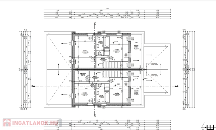 Az emeleten: 2 szoba, gardrób, előtér, fürdő wc-vel, 10m-es terasz kapott helyet!