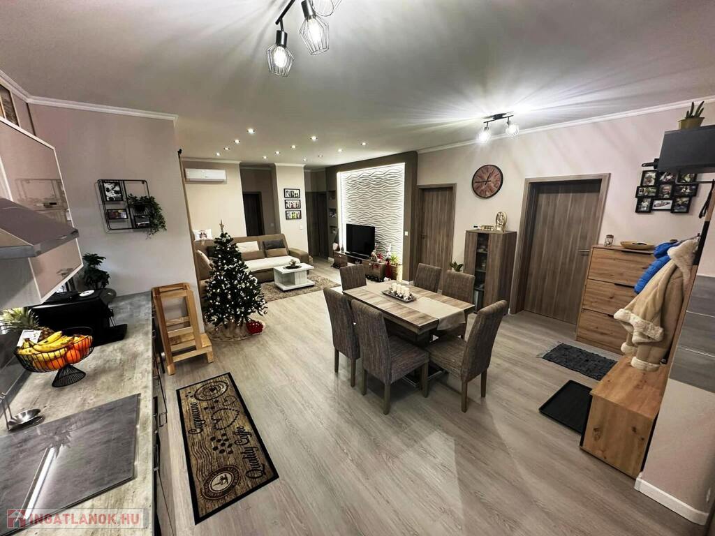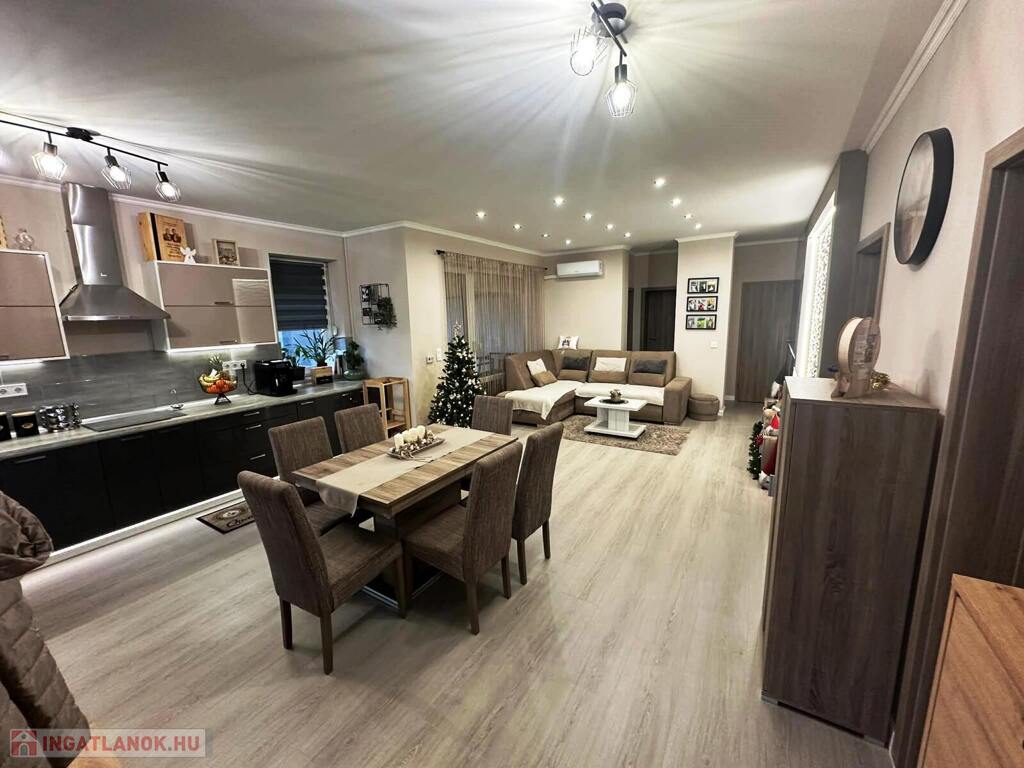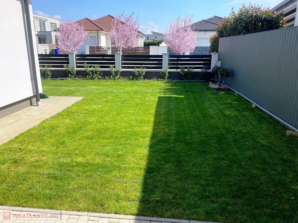 Nyíregyháza Ságvári kertváros új lakónegyedének csendes, aszfaltozott utcájában eladó egy modern építésű, 3 szobás, amerikai konyhás-nappalis, dupla garázzsal rendelkező 2019 ben épült ikerház 450m2 es parkosított telekkel.