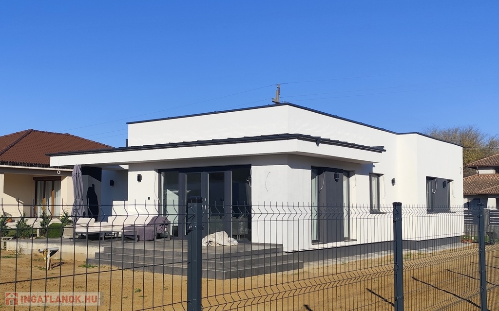 Nyíregyháza–Oros központi részének közelében eladásra kínálunk egy 139 m²-es, modern kialakítású, új építésű családi házat, mely 3 szobával, valamint nappali–konyha–étkező együttesével biztosít kényelmes életteret. Választható: járólap, laminált parketta burkolat, beltéri ajtók, szaniterek, csempék.