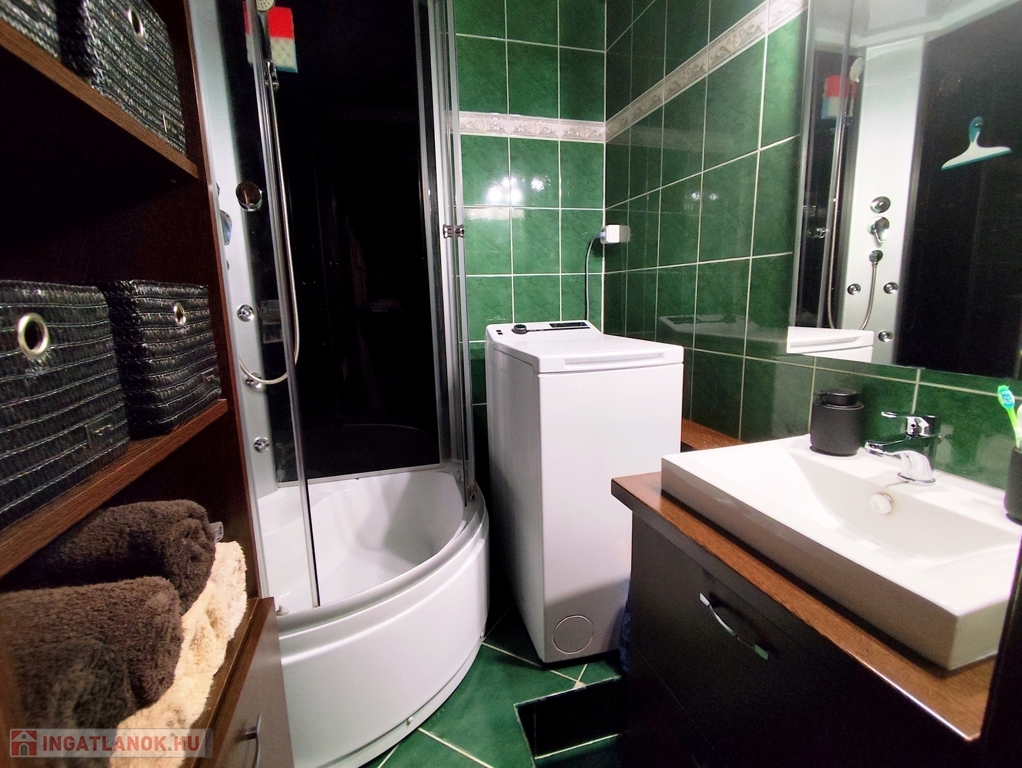 A lakás járólap és laminált parketta burkolattal rendelkezik, műanyag nyílászárók, klíma biztosítja a komfortot. A felújított, zuhanyzós fürdőszoba, az újszerű beltéri ajtók, valamint a szobában található beépített szekrény tovább növelik az ingatlan értékét. A lakáshoz közös tároló is tartozik.