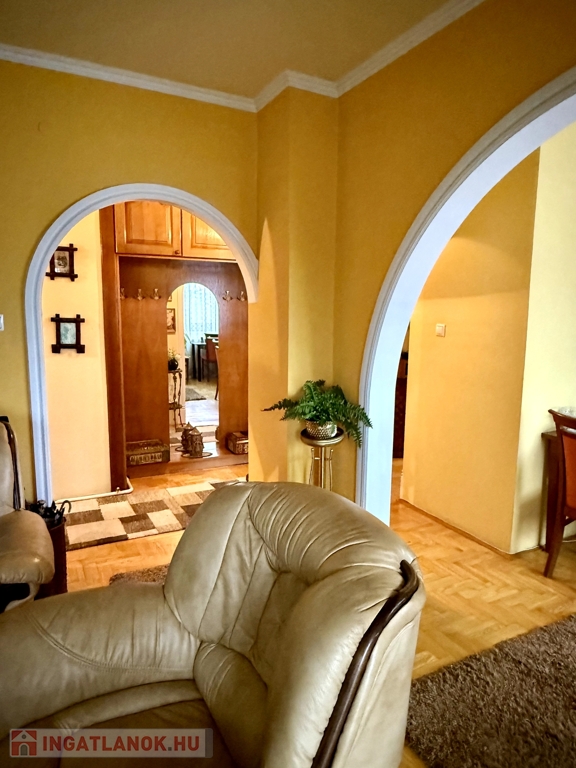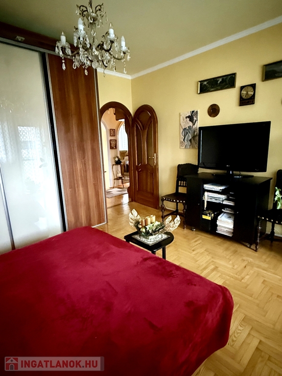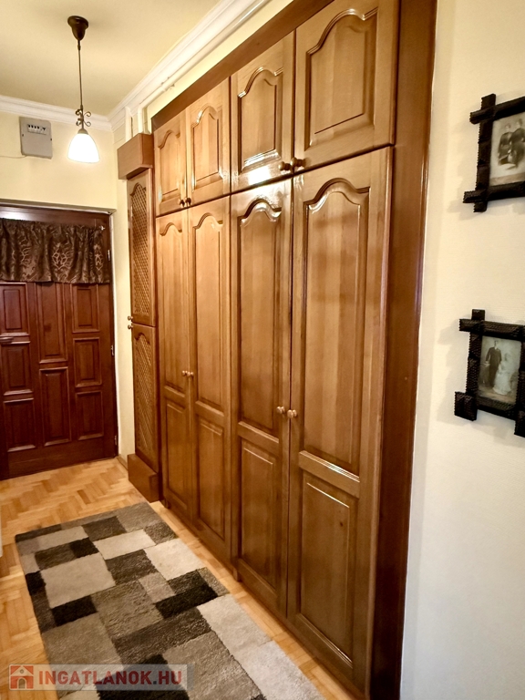 Az ingatlanhoz tartozik egy 21 m²-es belső udvari garázs, tárolórésszel, elektromos kapuval, járólappal burkolva – különösen értékes belvárosi adottság. Ára: 7,9 M Ft