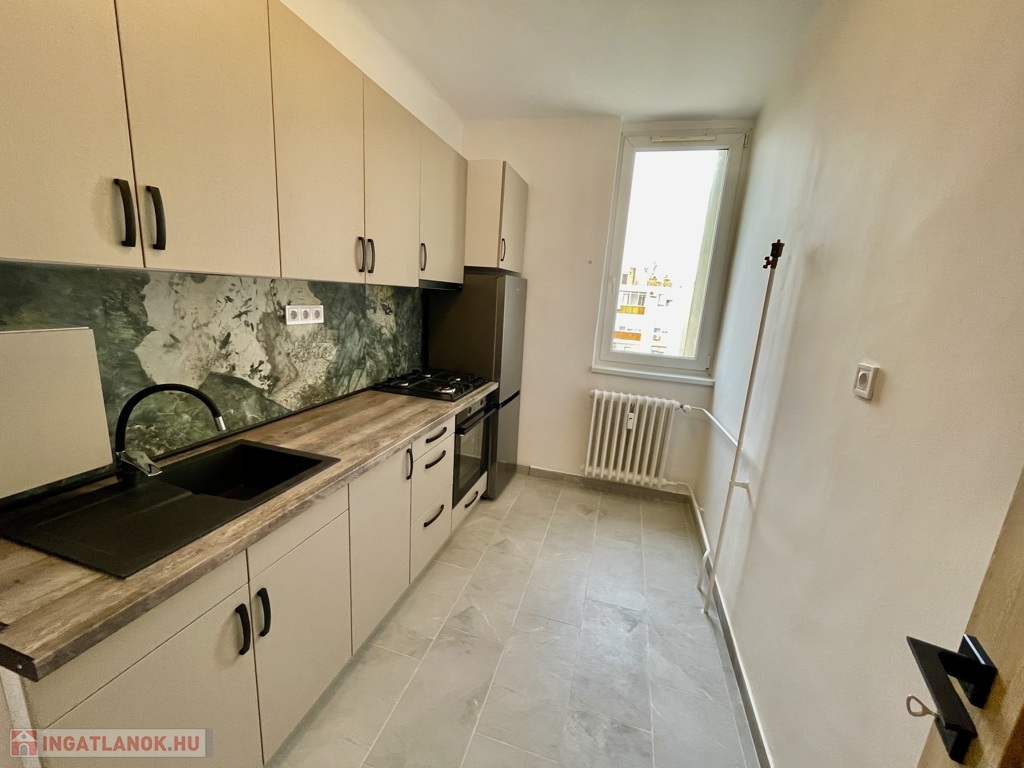 A 54 m²-es, két szobás ingatlan egy szigetelt, tégla építésű társasház negyedik emeletén helyezkedik el, és teljes körű felújításon esett át egészen a vezetékek szintjéig. A lakás minden részletében megújult: új villany- és vízvezetékek, modern burkolatok, új beltéri ajtók, valamint egy stílusos, gépesített konyhabútor került beépítésre. A kellemes hőérzetről vadonatúj klíma gondoskodik.