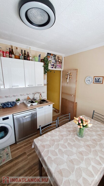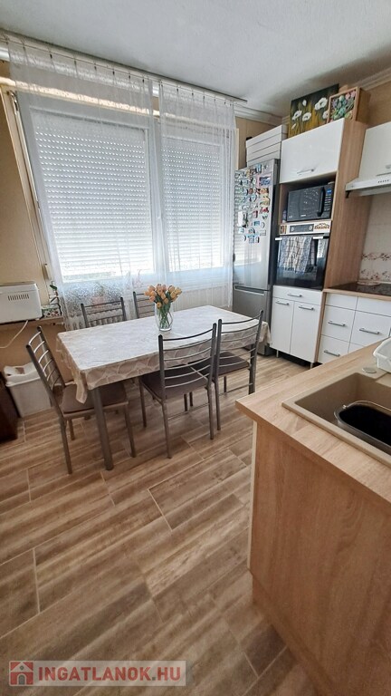 A lakás külön fürdőszobás és WC-s, mért távhővel felszerelt, műanyag nyílászárókkal és redőnnyel. Saját erkéllyel és tárolóval rendelkezik, burkolatai járólap és laminált parketta. A fürdőszoba felújított, a konyha egyedi bútorral beépített. Tehermentes, költözés megegyezés szerint.