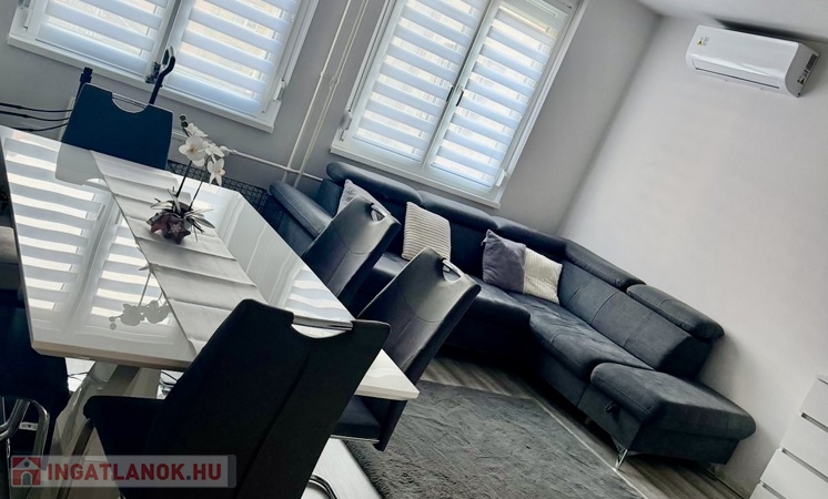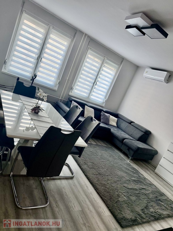 Nyíregyháza belvárosának szívében, a Korzó üzletház közvetlen szomszédságában eladó egy első emeleti, 87 m²-es, tágas kialakítású, három szoba + nappalis, erkélyes lakás, amely vezeték szintig felújított állapotban várja új tulajdonosát. Az ingatlan igényes, egyedi tervezésű, gépesített konyhabútorral, minőségi burkolatokkal és prémium beltéri ajtókkal rendelkezik, valamint három darab klímaberendezés gondoskodik a komfortos hőérzetről. A műanyag nyílászárók redőnnyel és reluxával felszereltek, a szigetelt, téglaépítésű társasház pedig rendezett, csendes környezetet biztosít. A lakásban négy nagyméretű, beépített szekrény található, melyek a vételár részét képezik. Fenntartási költsége rendkívül kedvező, a közös költség mindössze 7.000 Ft, ami a nagy alapterülethez képest különösen előnyös. Kiváló elhelyezkedésének köszönhetően nemcsak otthonnak ideális, hanem irodai használatra vagy befektetési célra is tökéletes választás, hiszen a belvárosi lokáció hosszú távon is értékálló.Energetikai besorolás:BBAz ingatlan azonosítója: 99563Érdeklődni: +36303275386 Az ingatlan azonosítója: 99563 Érdeklődni: +36303275386