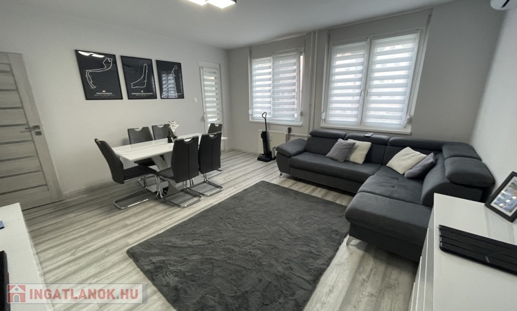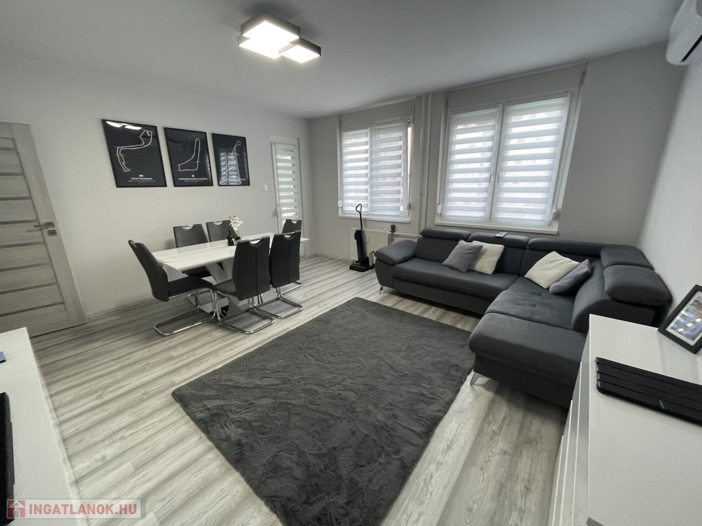 Nyíregyháza belvárosának szívében, a Korzó üzletház közvetlen szomszédságában eladó egy első emeleti, 87 m²-es, tágas kialakítású, három szoba + nappalis, erkélyes lakás, amely vezeték szintig felújított állapotban várja új tulajdonosát. Az ingatlan igényes, egyedi tervezésű, gépesített konyhabútorral, minőségi burkolatokkal és prémium beltéri ajtókkal rendelkezik, valamint három darab klímaberendezés gondoskodik a komfortos hőérzetről. A műanyag nyílászárók redőnnyel és reluxával felszereltek, a szigetelt, téglaépítésű társasház pedig rendezett, csendes környezetet biztosít. A lakásban négy nagyméretű, beépített szekrény található, melyek a vételár részét képezik. Fenntartási költsége rendkívül kedvező, a közös költség mindössze 7.000 Ft, ami a nagy alapterülethez képest különösen előnyös. Kiváló elhelyezkedésének köszönhetően nemcsak otthonnak ideális, hanem irodai használatra vagy befektetési célra is tökéletes választás, hiszen a belvárosi lokáció hosszú távon is értékálló.Az ingatlan azonosítója: 99582Érdeklődni: +36702560693 Az ingatlan azonosítója: 99582 Érdeklődni: +36702560693