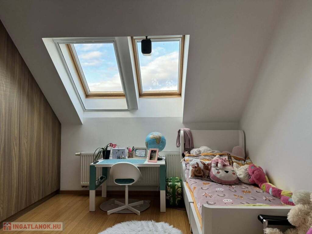 Az ingatlan tágas, világos terekkel és átgondolt elrendezéssel biztosít kényelmes otthont két szinten.