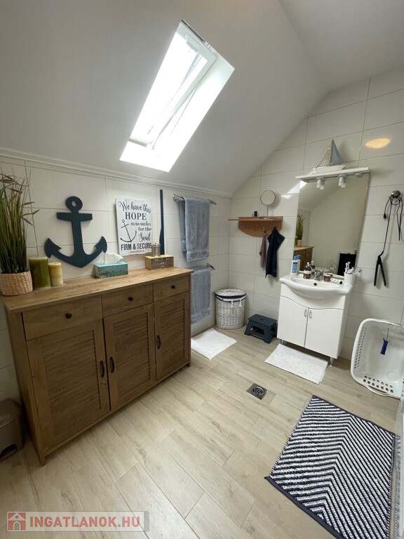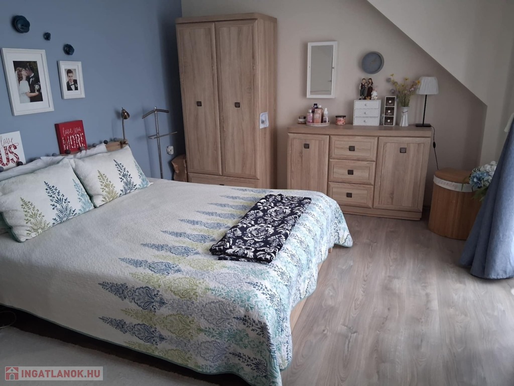 Felső szint: 3 hálószoba, fürdőszoba, WC, erkély