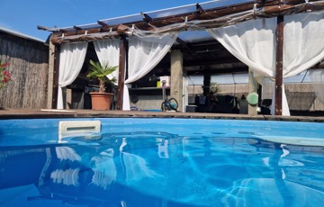 Továbbá az ingatlan területén 2 különálló, gondozott kert is található ahol: hangulatos filagória és medence wellness részleggel biztosítja a pihenést, egy természetes halastó: 20m × 10 méteres vízfelülettel várja a kikapcsolódásra vágyókat.