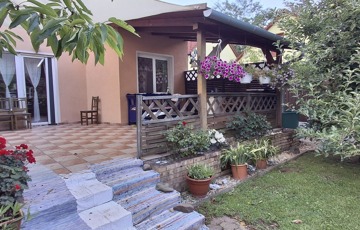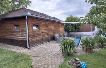 50 nm-es terasz, mely részben fedett, 40 nm-es pince, garázs. A parkosított udvar gyönyörű látványt nyújt, saját játszótér a gyerekeknek.