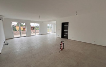 Kótaj csendes, rendezett részén kínálunk eladásra egy új építésű, önálló családi házat, amely egy 1500 m²-es, automata öntözőrendszerrel ellátott, parkosított telken helyezkedik el. A teljes térburkolás és kerítés elkészült, így az ingatlan azonnal költözhető, minden fontos elem készen áll.