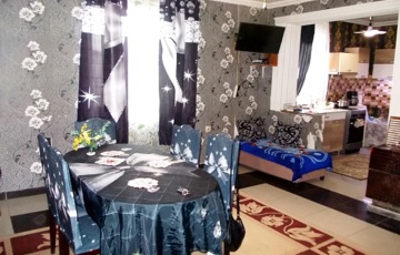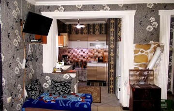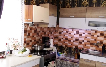 A téglaépítésű, cseréptetős ingatlan 2001-ben épült, belső tereit járólap és parketta burkolatok teszik otthonossá. A nappali és a konyha egy légtérben található, a két szoba külön bejáratú, a WC külön helyiségben került kialakításra.