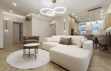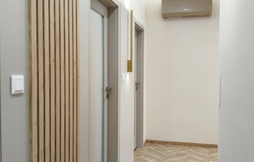 A lakás járólap és laminált padló burkolatokkal, hőszivattyús padlófűtéssel, valamint inverteres hűtő-fűtő klímával felszerelt. A 3 rétegű üvegezésű műanyag nyílászárók elektromos alumínium redőnyökkel rendelkeznek, biztosítva az energiahatékonyságot és a kényelmet.